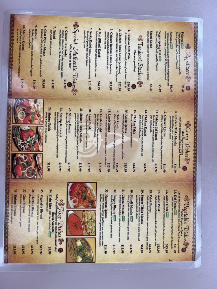A la carte. Clay oven specialties. Marinated ground chicken kabobs cooked in clay oven.